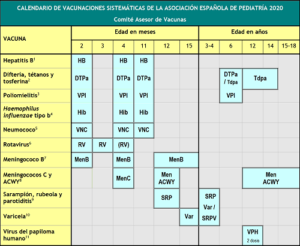 Para más información consulte la siguiente página: https://vacunasaep.org/profesionales/calendario-de-vacunaciones-de-la-aep-2020